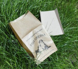 papierowe torebki na psie odchody Psia Torebka z łopatką